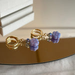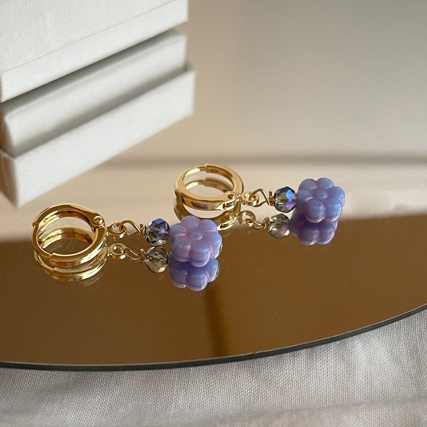 Están hechos a mano con aritos sin níquel, de latón bañado en oro y abalorios de cristal checo en color violeta y gris.