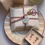 Cada pieza de tu pedido irá envuelta en papel de nido de abeja color blanco, con un cordón de algodón, la etiqueta de la marca y alguna pegatina. Si quieres que escribamos un mensaje personalizado en la tarjeta de agradecimiento, simplemente déjalo escrito en las notas de pedido.