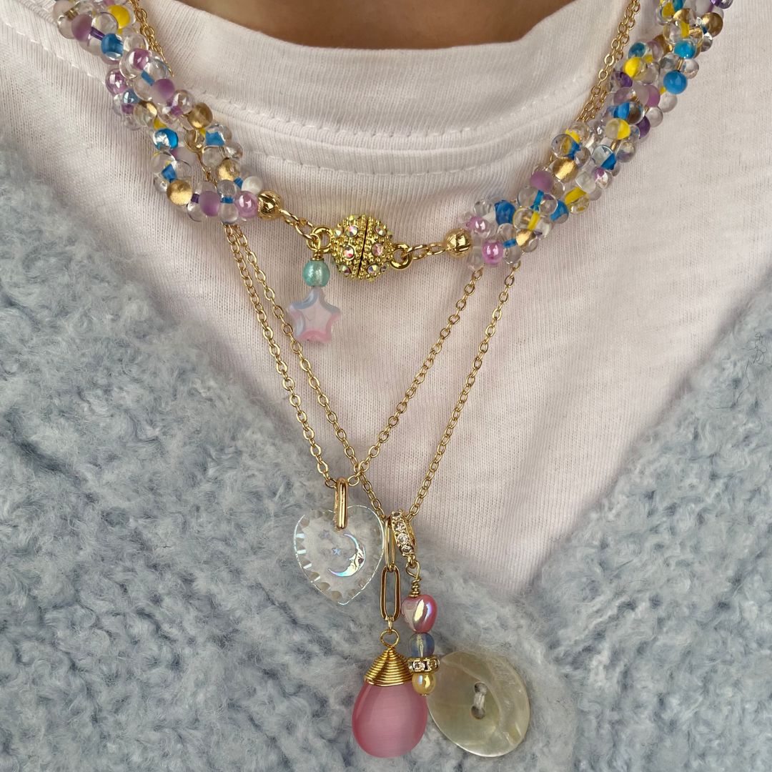 Notre obsession est d’atteindre la plus haute qualité possible en matière de bijoux, c’est pourquoi nous veillons à ce que les matériaux soient de la meilleure qualité. nous utilisons des perles d’eau douce, des perles en cristal tchèque de la marque PRECIOSA, la meilleure qualité de perles en cristal, fabriquées en République Tchèque avec des siècles de tradition dans le cristal de Bohême, des perles en résine que nous fabriquons à la main une par une dans notre atelier, ainsi que des finitions en laiton plaqué or ou en acier inoxydable.